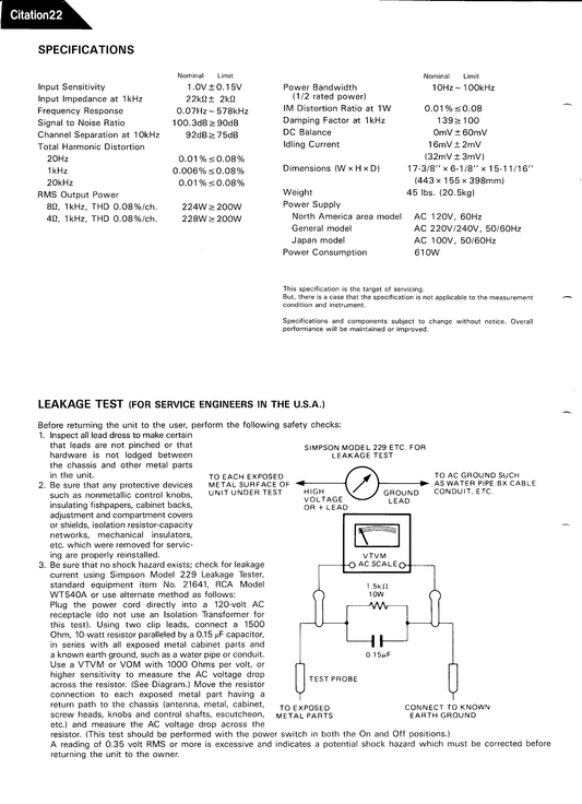 Harman/ Kardon Citation 22 Stereo Power Amplifier Service Manual (Pages: 34)