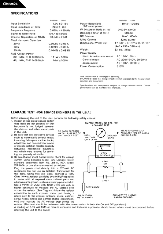 Harman/ Kardon Citation 24 Stereo Power Amplifier Service Manual (Pages: 31)