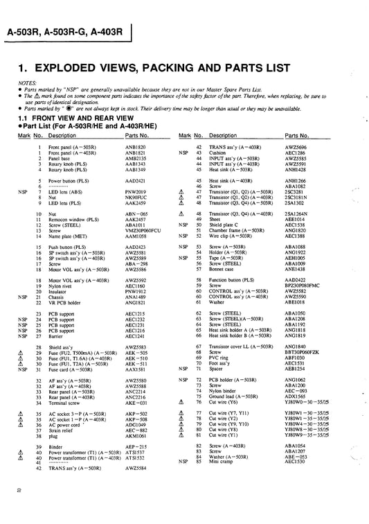 Pioneer A-403R, A-503R & A-503R-G Amplifier Service Manual (Pages: 27)