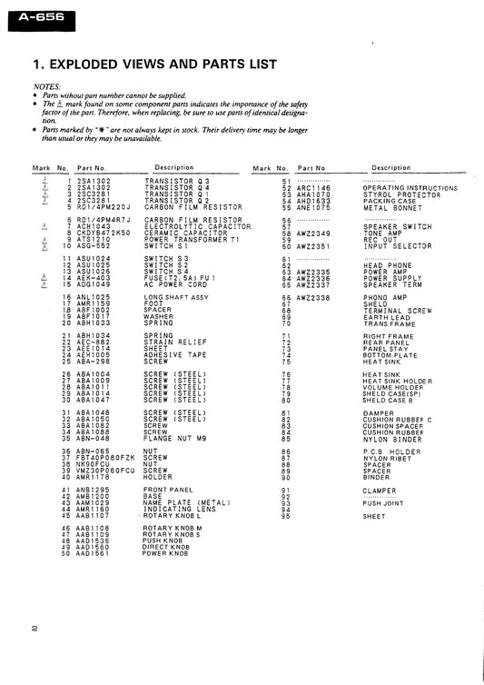 Pioneer A-656 & A-656-S Amplifier Service Manual (Pages: 28)