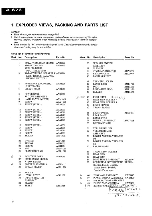 Pioneer A-676 & A-676-S Amplifier Service Manual (Pages: 35)