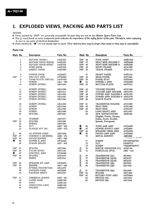 Pioneer A-701R & A-701R-G Amplifier Service Manual (Pages: 24)