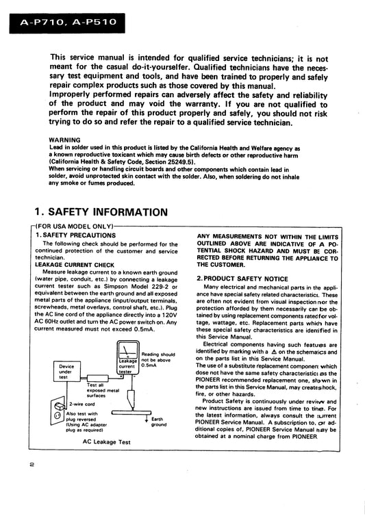 Pioneer A-P510 & A-P710 Amplifier Service Manual (Pages: 32)
