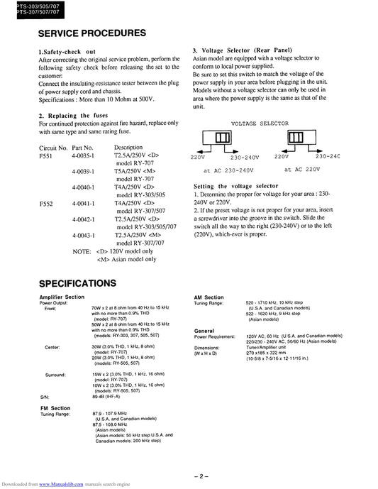 Onkyo PTS-303, PTS-307, PTS-505, PTS-507 & PTS-707 Stereo/ Tuner Amplifier Service Manual (Pages: 45)