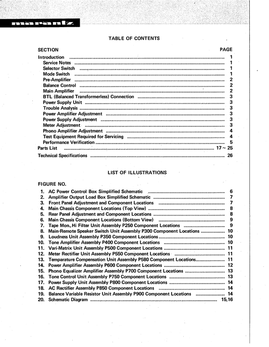 Marantz Model 250 Stereo Power Amplifier Service Manual (Pages: 27)
