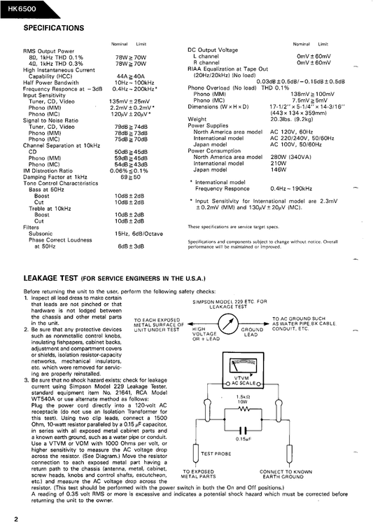 Harman/ Kardon HK6500 Amplifier Service Manual (Pages: 28)
