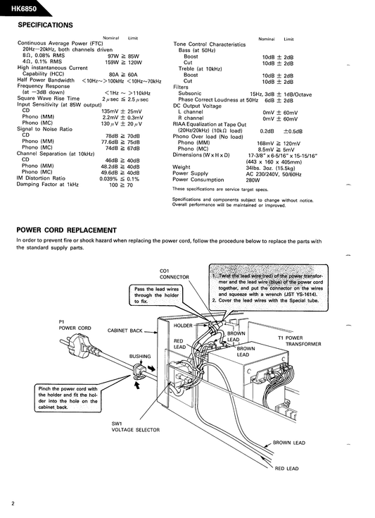 Harman/ Kardon HK6850 Integrated Amplifier Service Manual (Pages: 46)