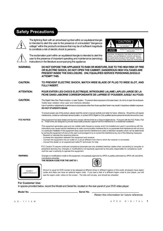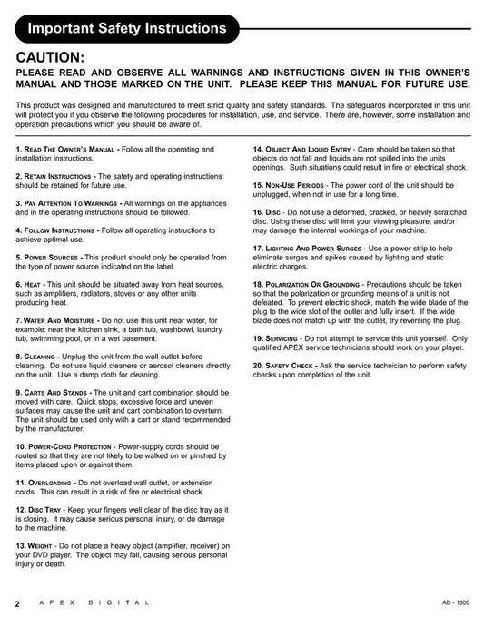 Apex AT1302 AT2002 At2002S DVD Player Operating Manual