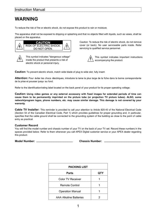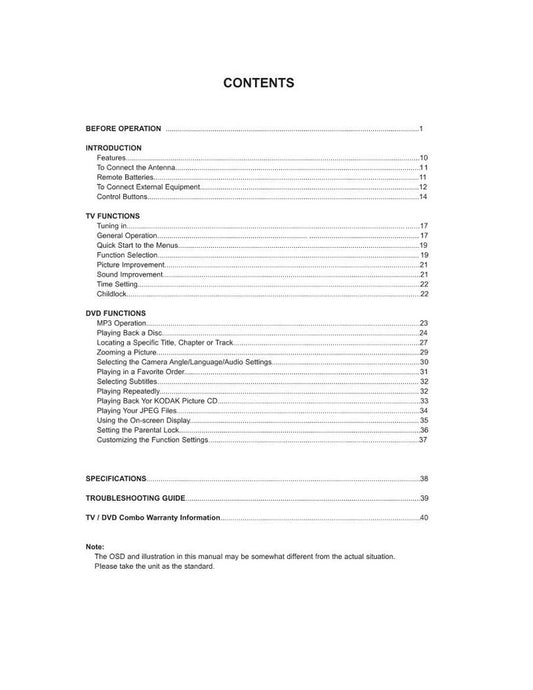 Apex GT2025DVR TV/VCR/DVD Combo Operating Manual