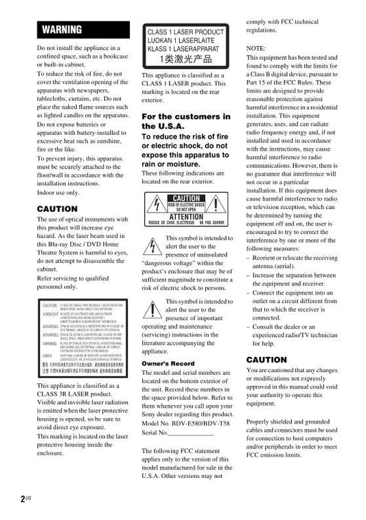 Sony BDVE580 Audio/Video Receiver Operating Manual