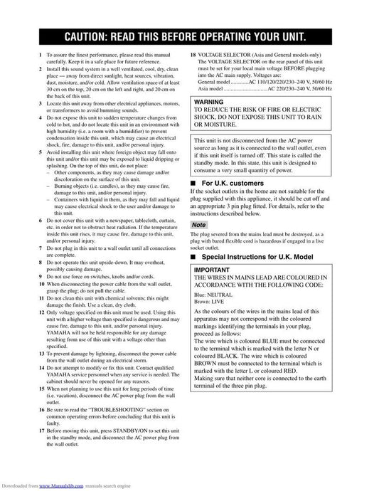 Yamaha RA-X2020 Audio/Video Receiver Operating Manual