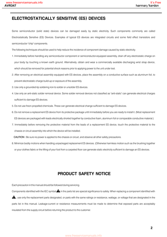 Harman/ Kardon AVR347 AV Receiver Service Manual (Pages: 218)