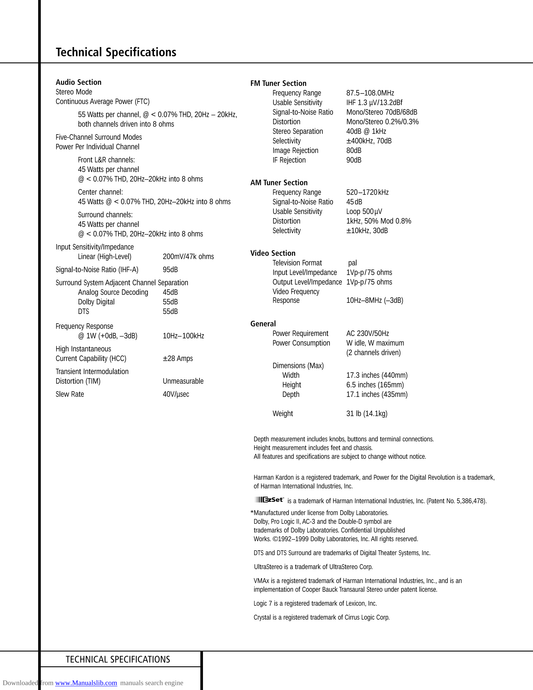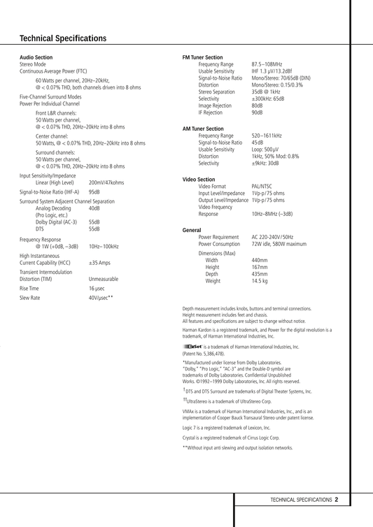 Harman/ Kardon AVR80 Audio/ Video Receiver Owner/ User Manual (Pages: 42)
