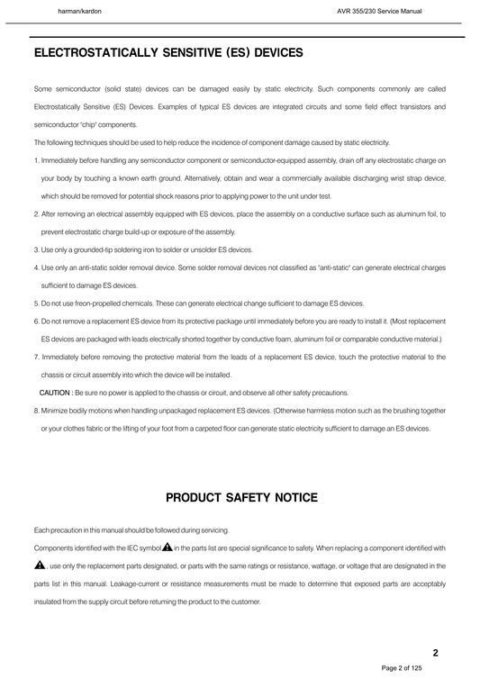 Harman/ Kardon AVR355/230 AV Receiver Service Manual (Pages: 125)