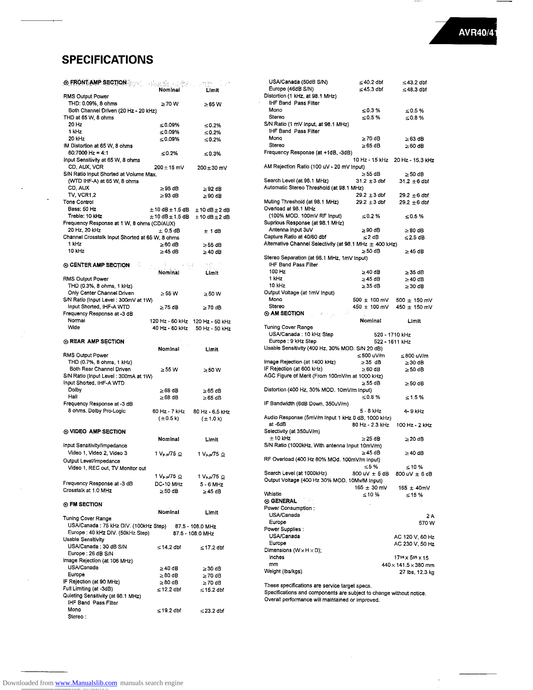 Harman/ Kardon AVR40 & AVR41 AV Receiver Service Manual (Pages: 70)