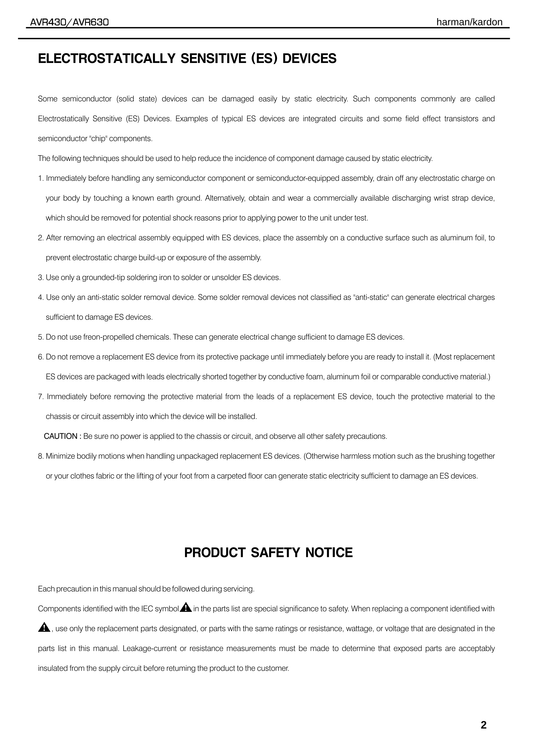 Harman/ Kardon AVR430 & AVR630 AV Receiver Service Manual (Pages: 126)