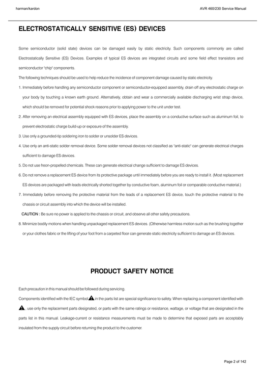 Harman/ Kardon AVR460/230 AV Receiver Service Manual (Pages: 142)