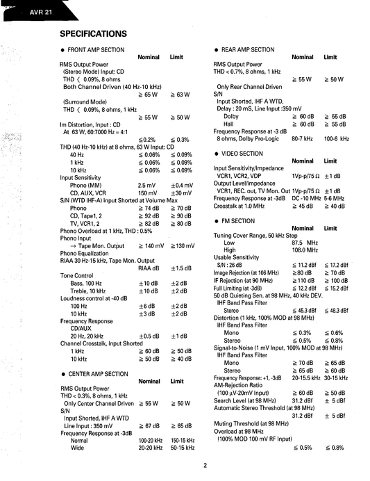 Harman/ Kardon AVR21 AV Receiver Service Manual (Pages: 86)