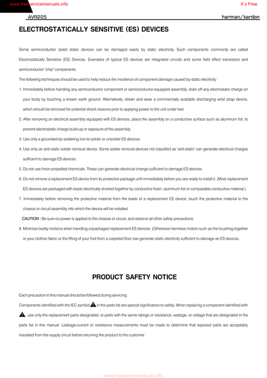 Harman/ Kardon AVR225 AV Receiver Service Manual (Pages: 96)