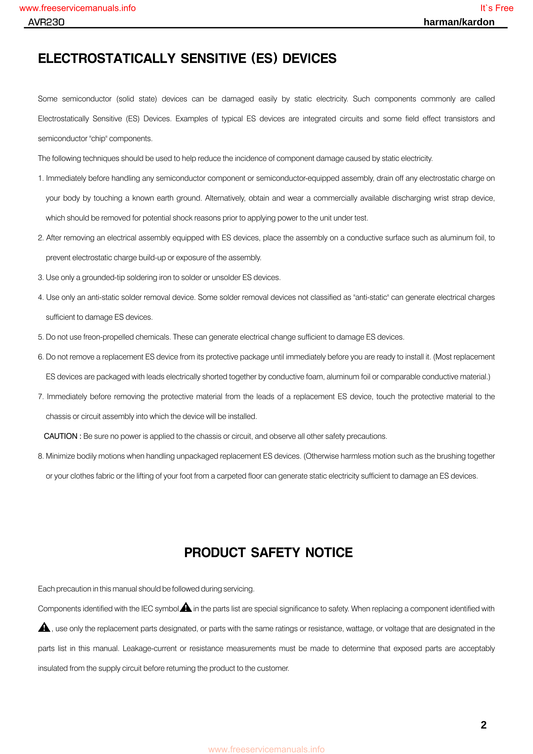 Harman/ Kardon AVR230 AV Receiver Service Manual (Pages: 125)