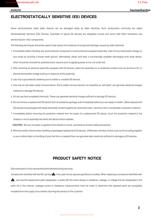 Harman/ Kardon AVR235 AV Receiver Service Manual (Pages: 122)