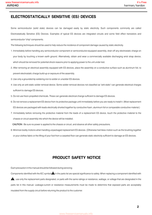 Harman/ Kardon AVR240 AV Receiver Service Manual (Pages: 156)