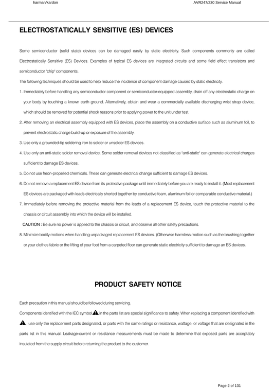 Harman/ Kardon AVR260/230 AV Receiver Service Manual (Pages: 131)