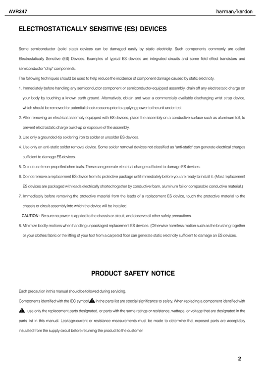 Harman/ Kardon AVR247 AV Receiver Service Manual (Pages: 206)