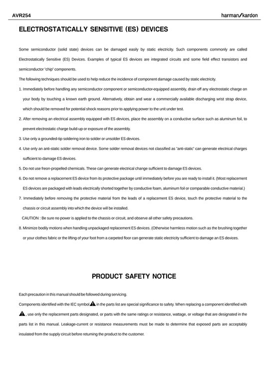 Harman/ Kardon AVR254 AV Receiver Service Manual (Pages: 189)