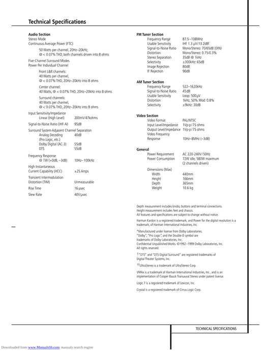 Harman/ Kardon AVR300 AV Receiver Service Manual (Pages: 91)