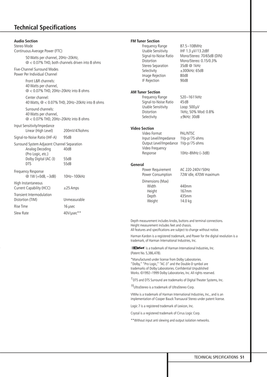 Harman/ Kardon AVR2550 AV Receiver Service Manual (Pages: 50)