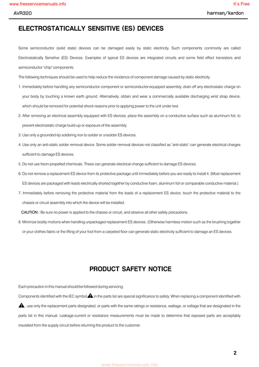 Harman/ Kardon AVR320 AV Receiver Service Manual (Pages: 158)