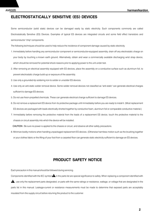 Harman/ Kardon AVR335 AV Receiver Service Manual (Pages: 127)