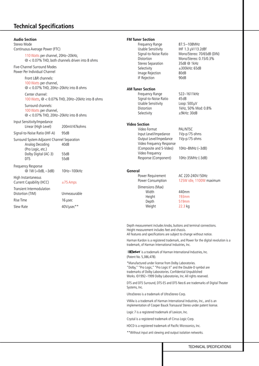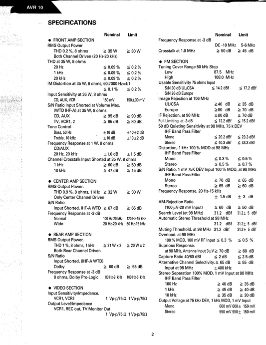 Harman/ Kardon AVR10 Audio/ Video Receiver Owner & Service Manual (Pages: 109)