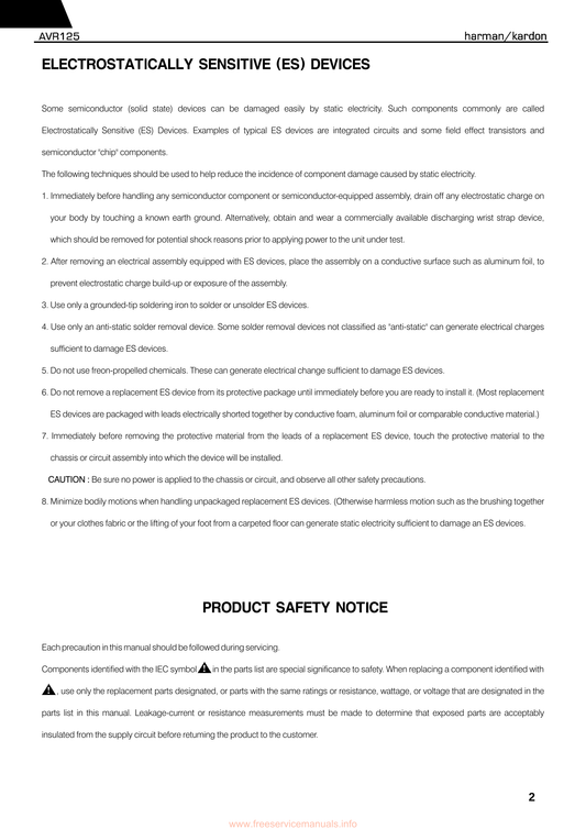 Harman/ Kardon AVR125 AV Receiver Service Manual (Pages: 83)