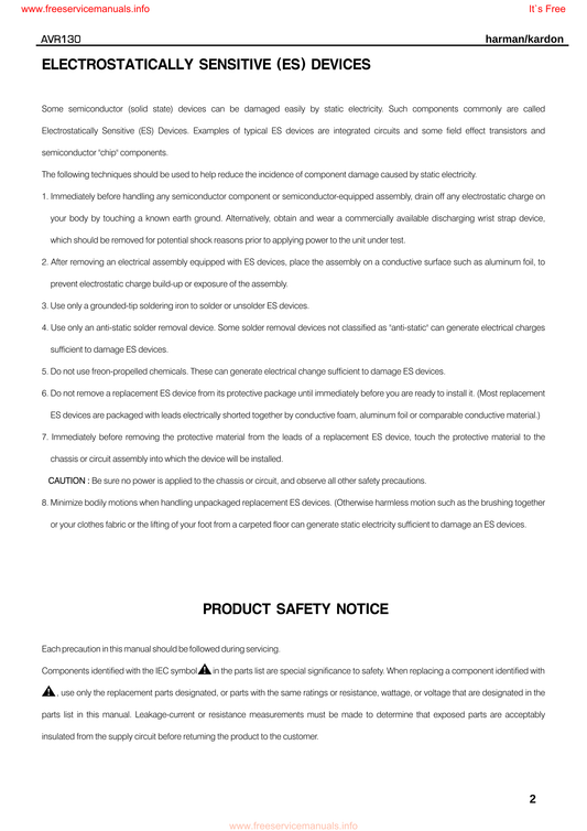 Harman/ Kardon AVR130 AV Receiver Service Manual (Pages: 119)