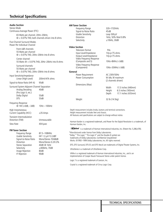 Harman/ Kardon AVR 8500 Audio/ Video Receiver Owner/ User Manual (Pages: 54)