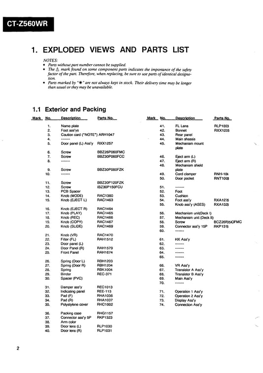 Pioneer CT-Z360WR, CT-Z460WR & CT-Z560WR Stereo Cassette Tape Deck Service Manual (Pages: 56)