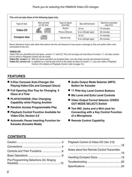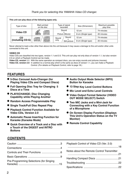 Yamaha VCD-102K CD Player Owner's/ User Manual (Pages: 23)