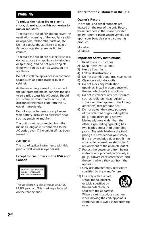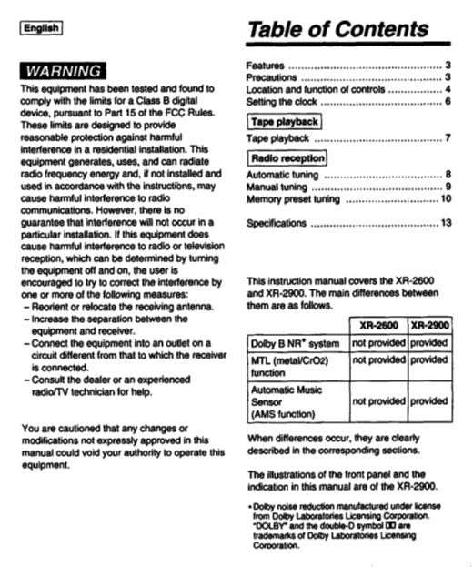 Sony R2600 Audio System Operating Manual