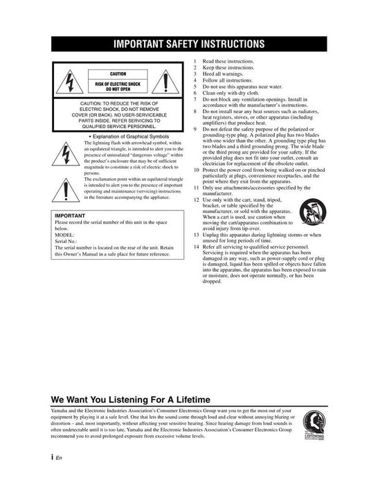 Yamaha RS202 Audio System Operating Manual