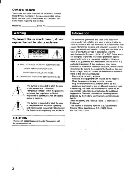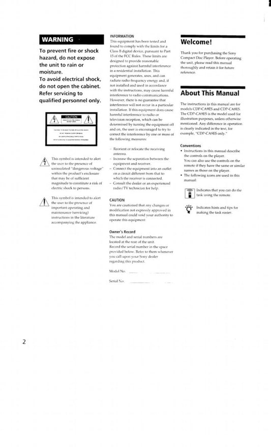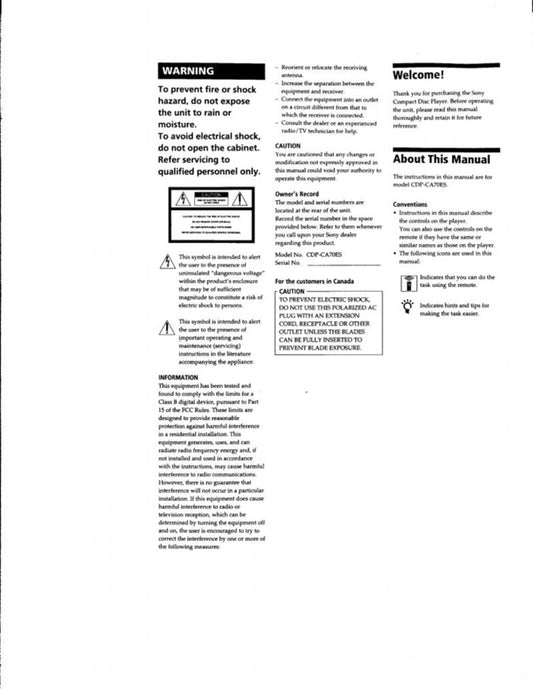 Sony CDPCA8ES CDPCA9ES Audio System Operating Manual