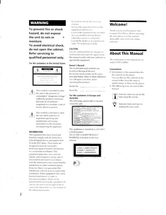 Sony CDPC5CS CDPC5CSB Audio System Operating Manual
