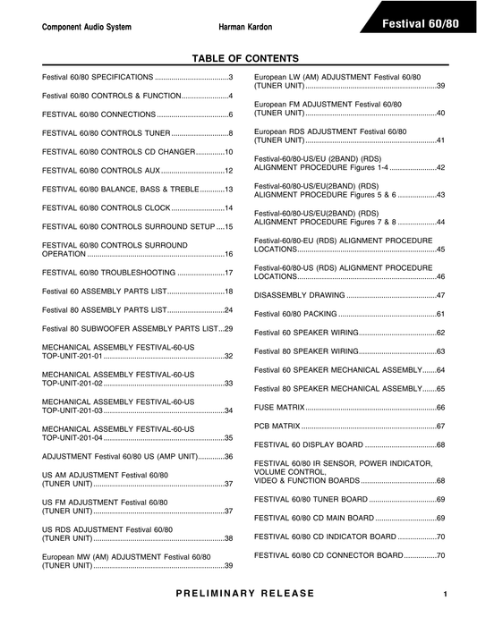 Harman/ Kardon Festival 60 & 80 Component Audio System Service Manual (Pages: 132)