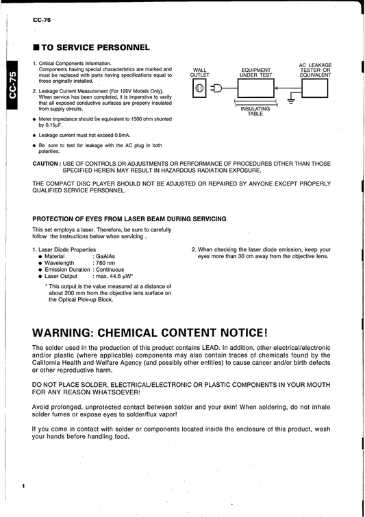 Yamaha CC-75 Audio System Service Manual (Pages: 104)