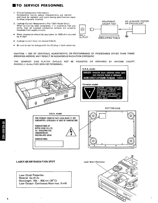 Yamaha CD-30 & CDX-500 CD Player Service Manual (Pages: 47)