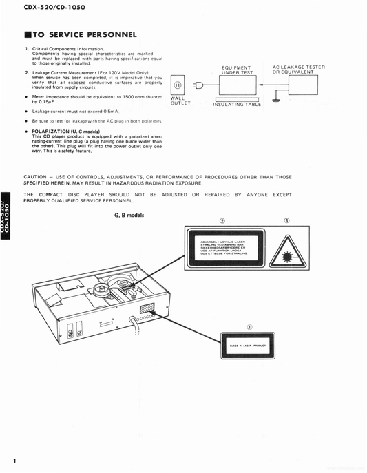 Yamaha CD-1050 & CDX-520 CD Player Service Manual (Pages: 42)