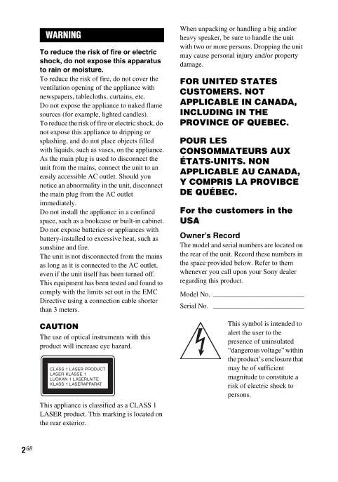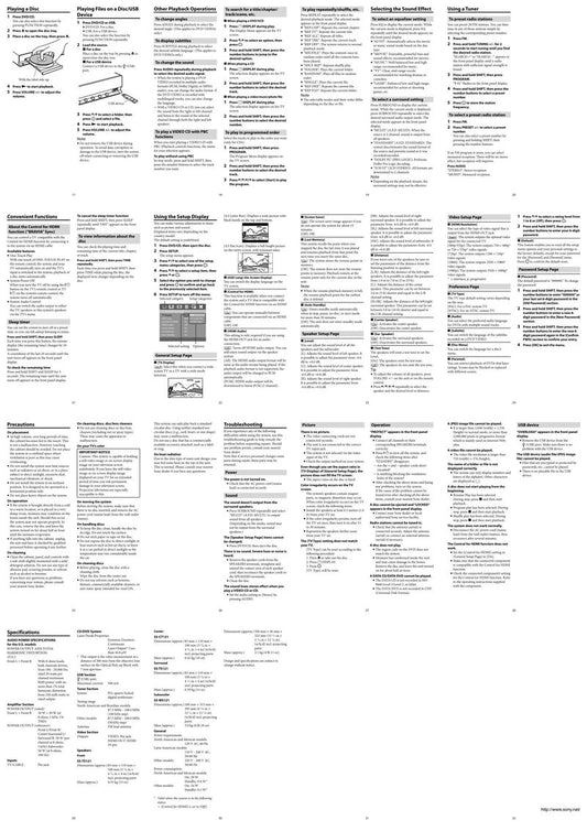 Sony HCDSHAKE33 Audio/Video Receiver Operating Manual