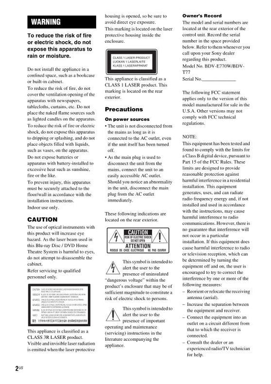 Sony BDVE770 W Audio/Video Receiver Operating Manual
