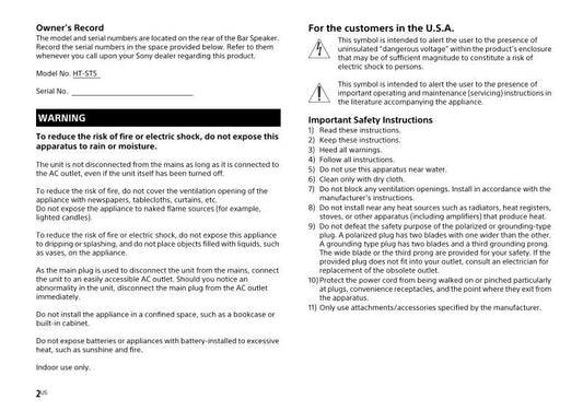 Sony HTST5 Audio/Video Receiver Operating Manual